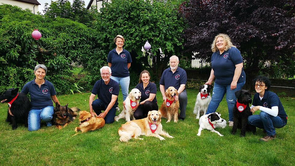 Ein DRK Therapiehundeteam besucht pflegebedürftige Senioren, Menschen mit Behinderungen, Kindergärten und Schulen. Die Hundeführer arbeiten ehrenamtlich, das heißt freiwillig und unentgeltlich. Sie werden intensiv auf ihre Einsätze vorbereitet. Nach bestandenem Eignungstest gehen Mensch und Hund in die 40 Unterrichtseinheiten umfassende Therapiehunde-Grundausbildung, die sowohl praktische als auch theoretische Inhalte vermittelt. Anschließend folgen Hospitationen bei erfahrenen Therapiehundeführerinnen und schließlich die Abschlussprüfung.